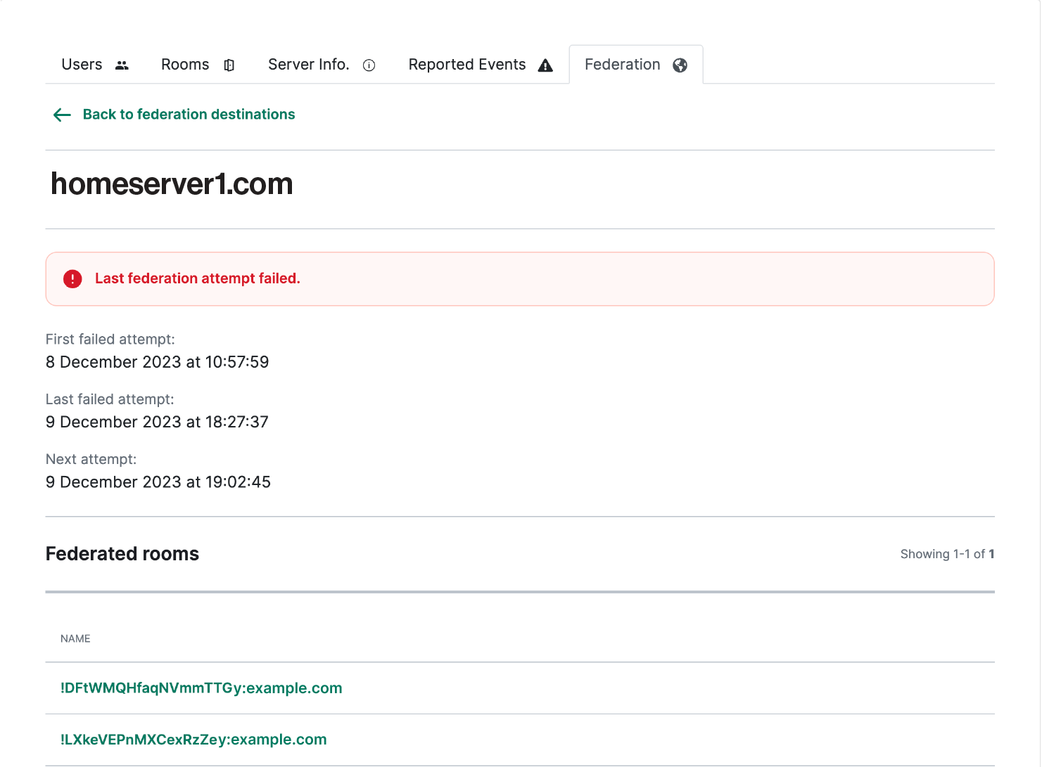 To view the servers that can communicate with your homeserver, navigate to the Federation tab.