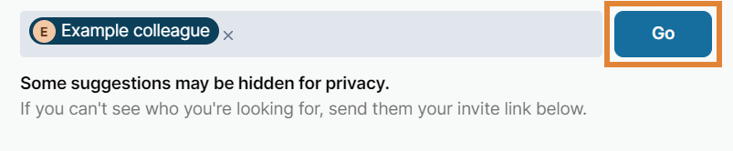 B. If you can't find the user on the list, you can send them an invite link. Click to copy the link and send it via, for example, email.