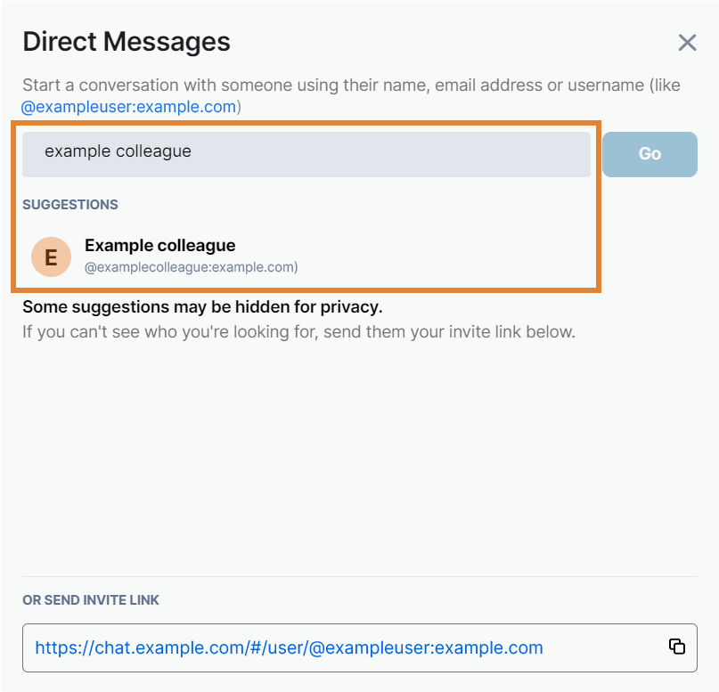 To invite a user and start a one-to-one chat with them, follow the instructions below.