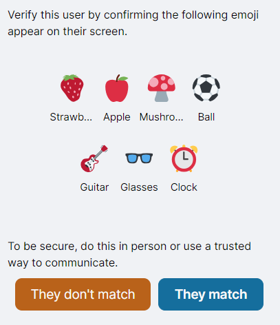 NOTE. We recommend that you compare the emojis in real life or over a video call to make sure that you are verifying the right person.