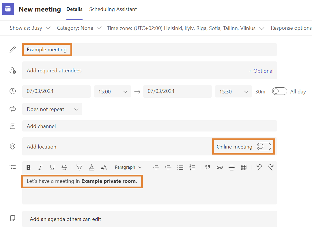 - In the meeting invitation, remove any links redirecting to an online meeting in that application.