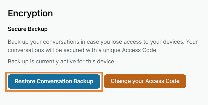 Under Encryption and Secure Backup, select Restore Conversation Backup.