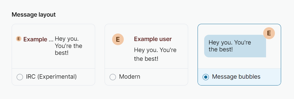 Under Message layout, select your preferred message layout from the following options:
