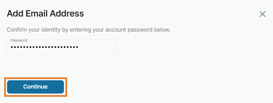 Enter your account password into the password field and select Continue.