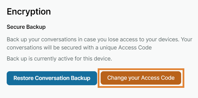 Under Encryption and Secure Backup, select Change your Access Code.