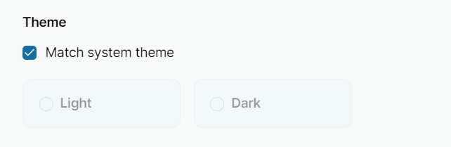 - Match system theme. Use the same theme as in your operating system.