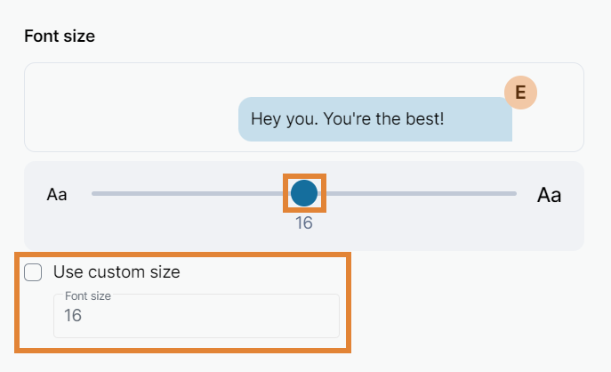 Alternatively, you can type in the preferred font size. Select the Use custom size option and enter the font size into the font size field.
