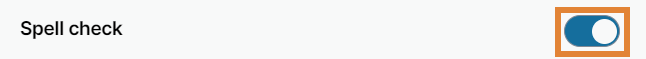 - Next to Spell check, Click the toggle to enable and disable spell-check.