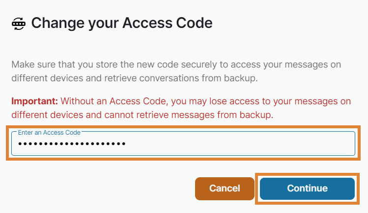 Confirm the new access code and select Continue.