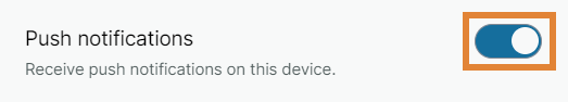 - Click the toggle next to Push notifications to enable or disable push notifications. The push notifications are enabled by default.