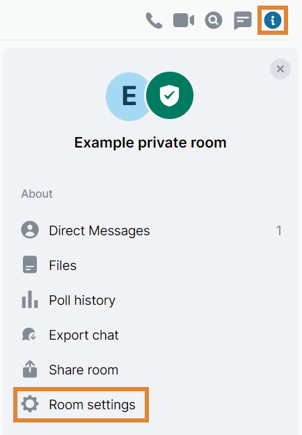 - Click the info icon at the top right corner of the room.