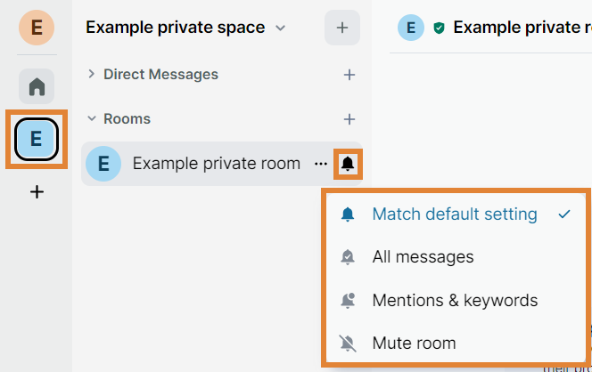 - Click the Notification options icon on the room. You can choose from the following options: