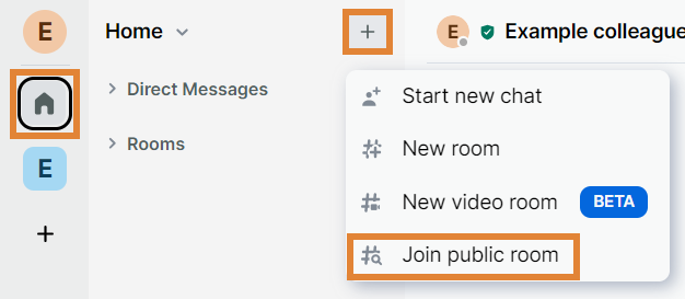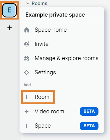 The below instructions are about adding a new room to a space. If you want to start a one-to-one chat, refer to Find and invite your colleagues, instead.