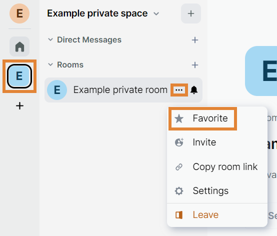 Click the three dots on the room and select Favorite.