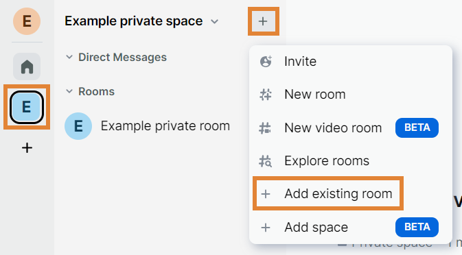 Navigate to the side bar on the left and click the space where you want to add an existing room.