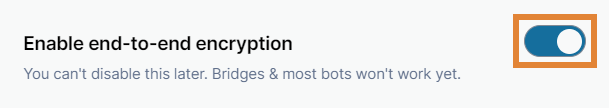 If you did not enable encryption when you created this room, you can enable it here.