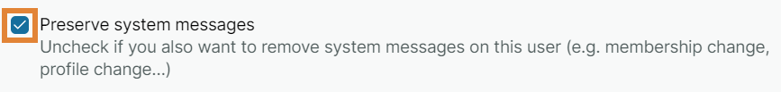 Check the Preserve system messages option if you don't want to remove system messages, such as membership changes and profile changes, on this user.