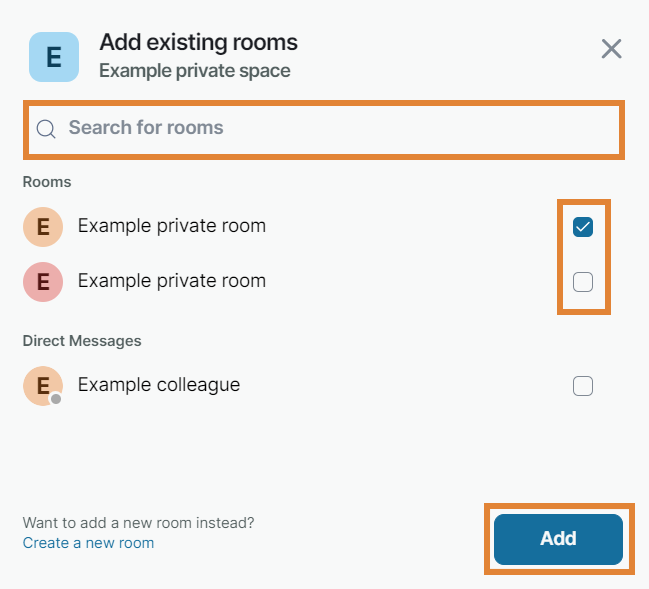 Select the room(s) that you want to add from the list. You can also use the search bar to search for rooms.