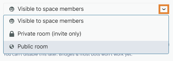 Open the drop-down menu to select the visibility setting of your room: