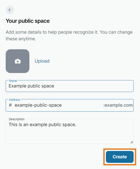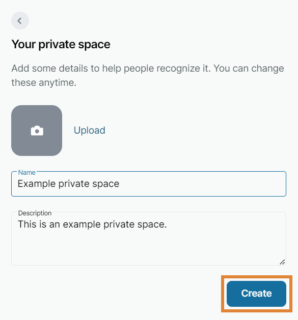 - Upload a picture and enter the name and description of your space.