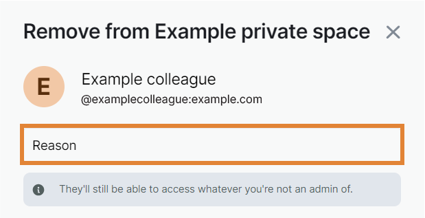 NOTE. A removed user will still be able to access whatever you are not an admin of.
