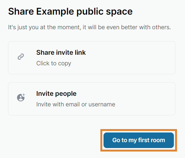 Invite users to your public space. You can share a link or invite with email or username. NOTE. You can invite more users later.
