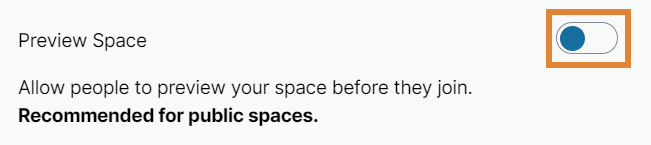 - Next to Preview Space, click the toggle to enable or disable the preview feature. This allows people to preview your space before they join.