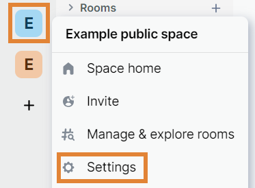 - Navigate to the side bar and right-click the space that you want to edit. Select Settings.