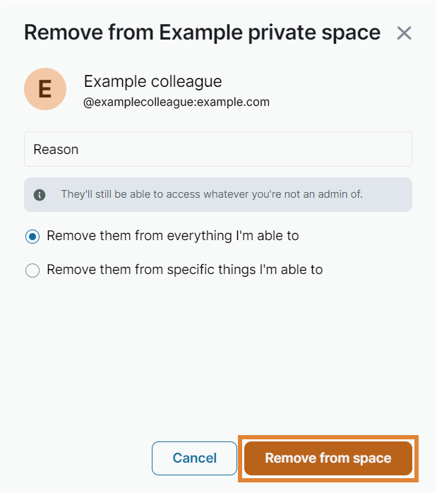 - Under Admin tools, select Remove from space.