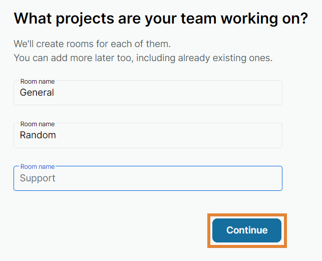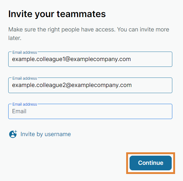 If you are creating a private space for a team, invite your teammates by entering their email addresses into the address fields. Finish by selecting Continue.