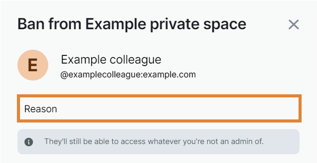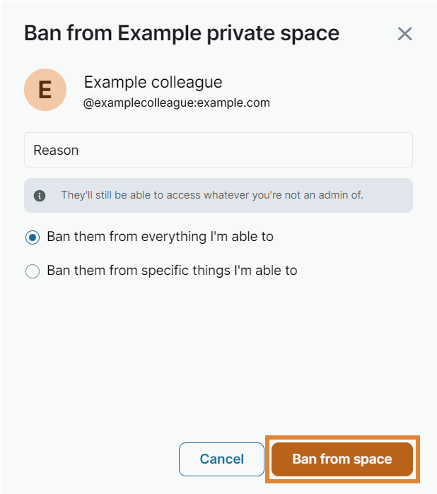 - Under Admin tools, select Ban from space.