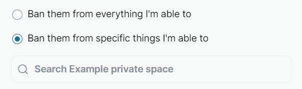 - Select where you want to ban the user from. If you select the second option, enter the locations into the text field.