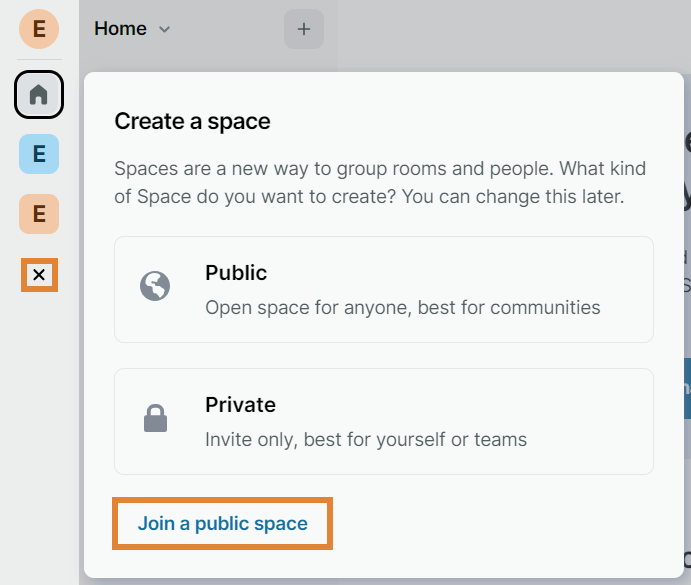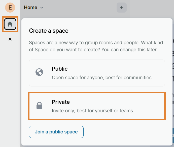 - Default setting for private spaces: Private (invite only)