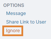 To unignore a user, select Unignore.