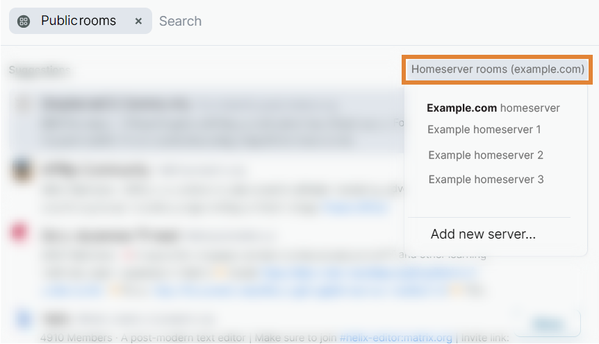 You can even search for public spaces in other servers. To open the server list, click the drop-down menu at the right side of the window.