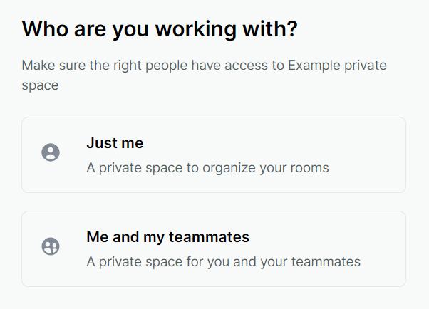 Select whether you want to create a private space just for yourself (Just me) or share it with other users (Me and my teammates).