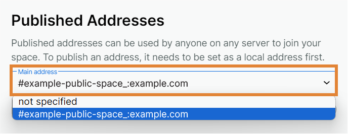 - Click the toggle below to enable or disable publishing the room in your homeserver's room directory.